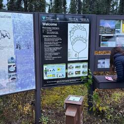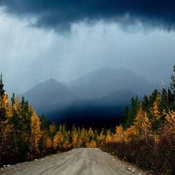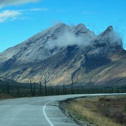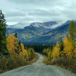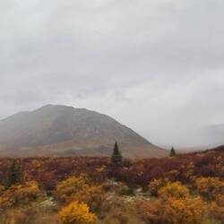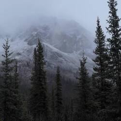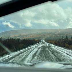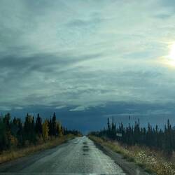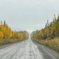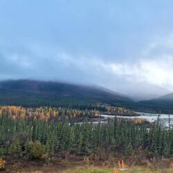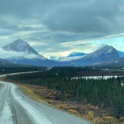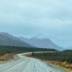 Nach dem Frühstück entsorgten wir noch kurz den Abfall und fuhren dann in Richtung Tombstone, wo wir in den nächsten Tagen eine Wanderung machen wollen. Leider war das Wetter ziemlich verhangen und es regnete leicht, weshalb wir einfach mal weiter und immer weiter fuhren und hofften, dass wir auf dem Dempster Highway irgendwo ein tolles Plätzchen finden würden.