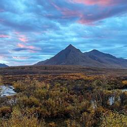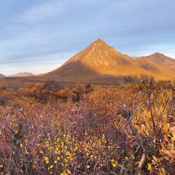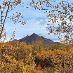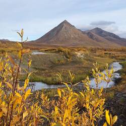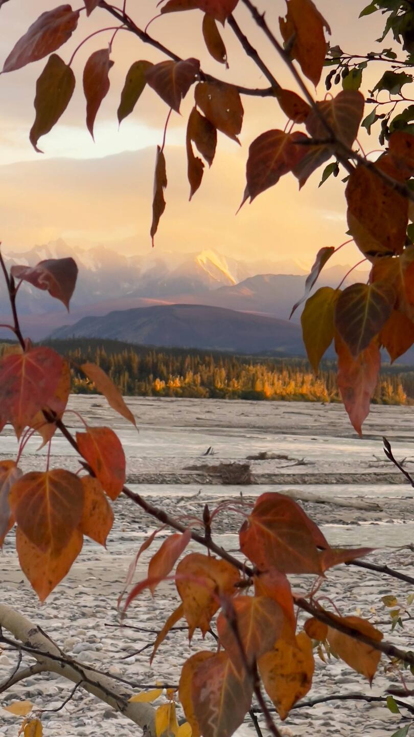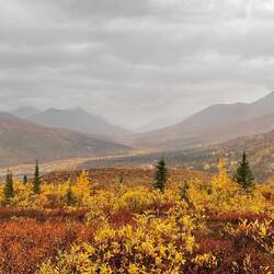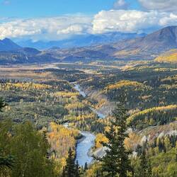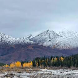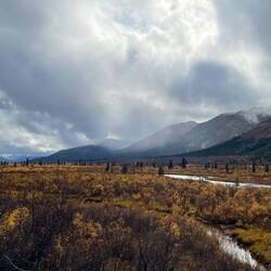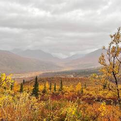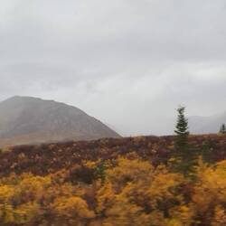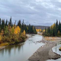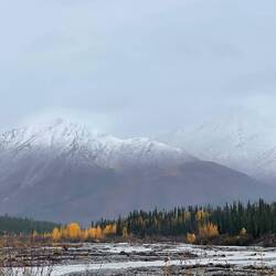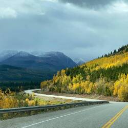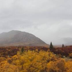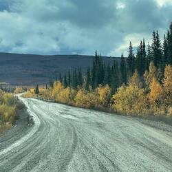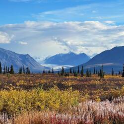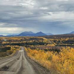Beim Erwachen beschlossen wir, statt direkt in Richtung Tok, nochmals in Richtung Delta Junction zu fahren, weil die Gegend bei der Hinfahrt so schön war. Die Pflanzen leuchteten immer noch in den schönsten Herbstfarben und man sah diesmal sogar die Berge.