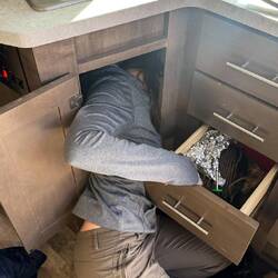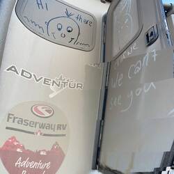 Das verlorene Treppenstück mussten wir leider beichten, die Sache mit dem Schlauch, den wir ja bereits ersetzt hatten oder die total 4 kaputten Gläser und Tassen haben wir verschwiegen. Dazu muss gesagt werden, dass wir uns dafür auch nicht wirklich verantwortlich gefühlt hätten. Bei GoNorth erhält man solches Geschirr in einer gepolsterten Tasche, weil die Strassen nur so mit Schlaglöchern und anderen Unebenheiten übersät sind und dadurch die Küchenschränke kräftig durchgerüttelt werden. Bei Fraserways hat man uns die Tassen und Gläser in eine Kartonvorrichtung gesteckt, welche eigentlich für einen kurzen Transport von Starbucks zum Auto oder so gedacht wären. Das Geschirr hat sich jedenfalls TÄGLICH rausgelöst und lag anschliessend wild verteilt im Schrank..