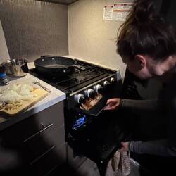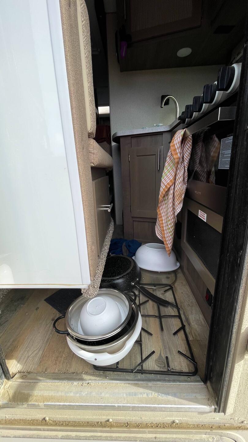 Bevor das Wetter schlechter wurde, fuhren wir bei einem Rastplatz raus, um draussen im Sonnenschein packen zu können. Ich stellte am Ende fest, dass mein geliebtes, 30-jähriges Sackmesser nirgends mehr auffindbar war. Ich wusste, dass ich es in eine Küchenschublade gesteckt hatte, wo es nun jedoch nicht mehr war. Mit der Taschenlampe bewaffnet, entdeckte es schlussendlich in den tiefsten Tiefen der Küchenschränke. Ich versuchte, irgendwie ranzukommen, aber keine Chance. Am Ende hätten wir beinahe einen peinlichen Rettungseinsatz provoziert, weil ich mit dem Arm in den Küchenschränken feststeckte, weil sich die Uhr irgendwo verheddert hatte… Nachdem ich nach einer Weile doch noch freikam, gab ich vorerst auf und verschob einen erneuten Versuch auf den nächsten Tag.