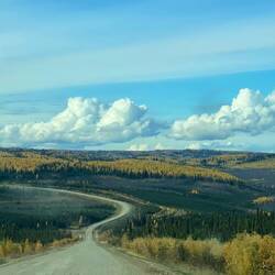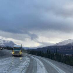 Kurz vor Dawson tankten wir und besorgten uns sicherheitshalber einen Kanister AdBlue, damit wir nicht irgendwo im Nirgendwo stecken bleiben, weil es nunmal in Alaska sowas nicht gibt. Ob dem so ist, wissen wir nicht, aber ich habe echt keine Lust, es rauszufinden.