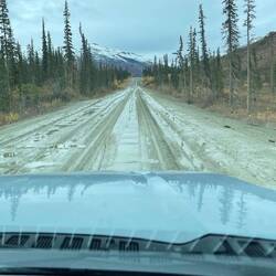 Unterwegs sahen wir ein anderes, sehr langsames Auto. Simi sprach kurz mit ihnen und sie teilten uns mit, dass der Dalton-Highway aktuell vermutlich gesperrt oder nur unter äusserst widrigen Bedingungen zu fahren sei an einer Stelle. Wir nehmen an, es ging um den Bereich, wo auch wir gestern nur knapp nicht stecken geblieben sind (was wohl aus den Australiern geworden ist??). Wir sind gespannt, wann die Passage wieder befahrbar ist. Unser Plan wäre eigentlich, am Freitag von hier wegzufahren in Richtung Heli-Mark. Wir werden sehen, ob das möglich ist. Grundsätzlich vertrauen wir darauf, dass die dutzenden Lastwagen-Transportunternehmen ein sehr grosses Interesse daran haben, dass ihre Fahrer problemlos ans Ziel in Prudhoe-Bay oder zurück nach Fairbanks kommen und deshalb alles daran setzen, die Strasse wieder befahrbar zu machen. Wir sind gespannt und werden wohl am Freitag die LKW-Fahrer in Coldfoot fragen, ob sie was gehört haben von ihren Kollegen bzw. uns was über die aktuellen Strassenverhältnisse berichten können. Internet oder Handy-Empfang gibt es hier ja nirgends..