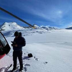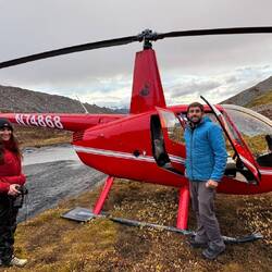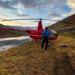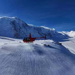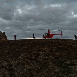 Um 17.00h ging es noch eine Weile, bis wir alle uns wieder gefunden hatten. Mark wartete drinnen auf uns, wir draussen beim Heli auf ihn.