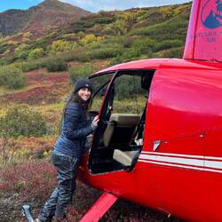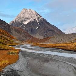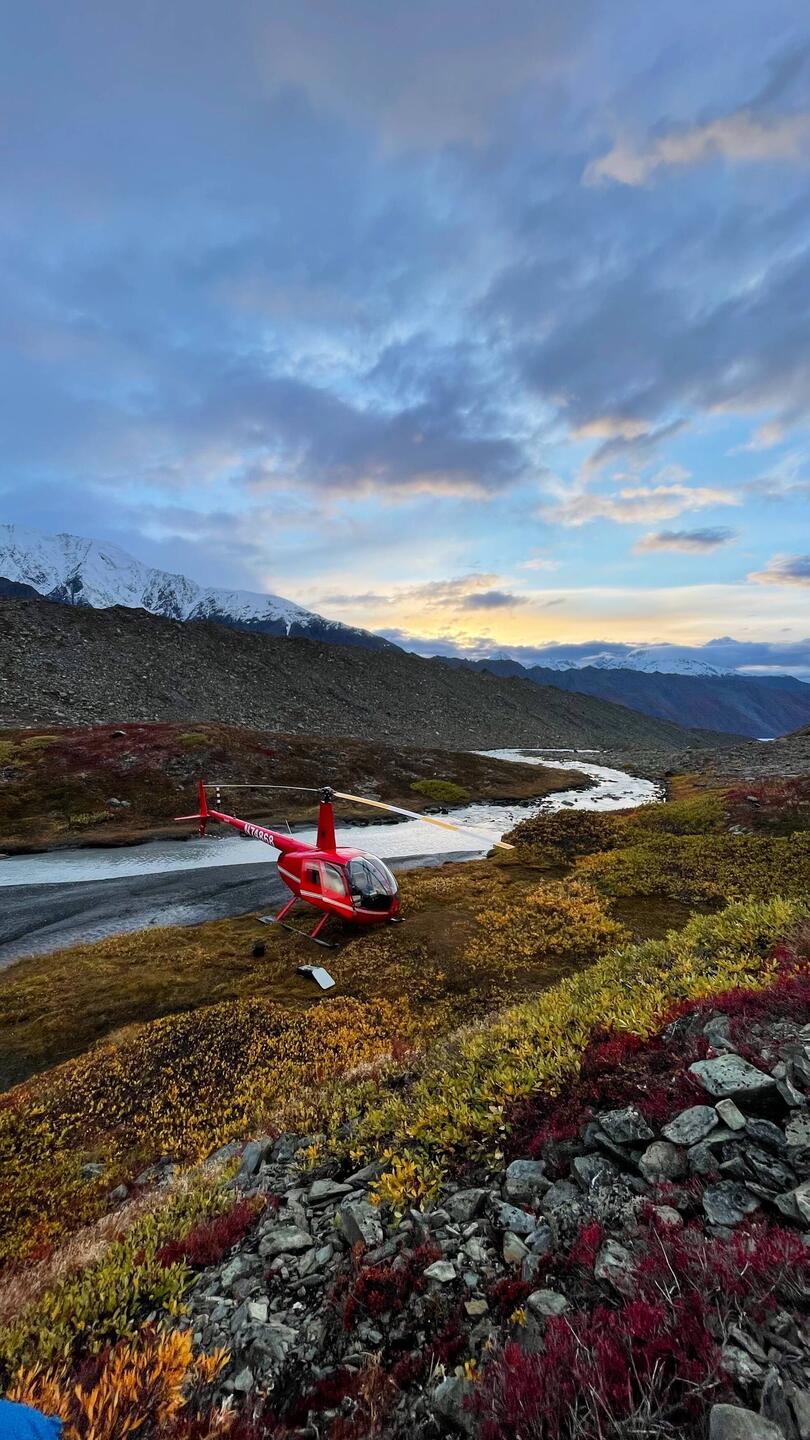 Irgendwann flogen wir doch los. Wir landeten zuerst bei einem Tal mit Fluss und Berg, wo es tonnenweise Heidelbeeren gibt und wir damit rechneten, demnächst einen pelzigen, schwarzen Freund neben uns zu haben. Unterwegs hatten wir nämlich schon mehrere Schwarzbären gesehen. Die Szenerie war echt schön. Sehr farbig, Bollywoodfreunde hätten ihre wahre Freude daran.
