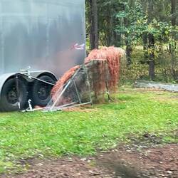 Jedenfalls fuhren wir weiter und hielten an der Kreuzung zur Nahanna Range Road, um kurz aufs Klo zu gehen und dann doch etwas länger, weil wir auch gleich Mittagspause machten. Als wir ausstiegen dachten wir zunächst, dass wir erneut in irgendeinem Jagdgebiet gelandet sind, denn es klang, als würde geschossen. Das Geschiebe hörte und hörte nicht auf und wir dachten schon, wie blöd man eigentlich sein kann und trotz 20 oder mehr Schüssen das Tier nicht treffen konnte. Hier möchte ich hinzufügen, dass wir in den USA Personen gesehen haben, die mit ihrem Maschinengewehr auf die Jagd gegangen sind…..