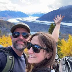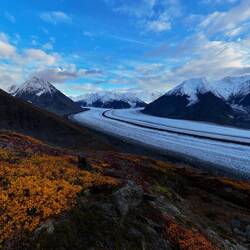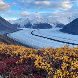 Der nächste Stop war noch farbenprächtiger, mit Blick auf den Flussgletscher und einen Berg. Überall war es rot, gelb, orange.. Sehr schön!