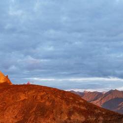 Irgendwann konnte er sich doch noch durchringen und stand ebenfalls auf. Ich ging schon mal nach draussen, wo ich ganz hibbelig wurde, weil der Himmel immer heller wurde und sich ein schönes Morgenrot bildete. Simi trödelte weiter, sodass ich irgendwann einfach losmarschierte, was er mir noch den ganzen Tag lang vorwerfen würde.