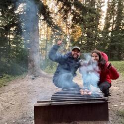 Zurück beim Campground machten wir ein Feuer und assen Knoblauchbrot, währenddem wir stillschweigend das schöne Feuerchen betrachteten. Gegessen haben wir schlussendlich im Camper, weil wir dachten, das die Glut zu wenig Hitze erzeugen würde, um Essen auf dem doch sehr hoch platzierte Gitter genügend erwärmen zu können. Schade, aber es schmeckte auch im Camper gut..Read more