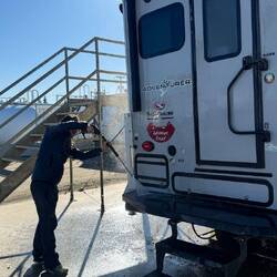 Da uns der Campingplatz nicht wirklich zusagte, fuhren wir noch etwas weiter und endeten schlussendlich in Delta Junction, wo wir das schöne Wetter nutzten, um endlich den Dreck von unserem Camper zu waschen.