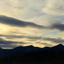 Nachdem wir wieder auf der normalen Strasse waren fuhren wir weiter und weiter und weiter. Um uns rum nur farbige Wälder, was an sich schön war, aber schlussendlich doch eintönig (jaaa.. jammern auf hohem Niveau…). Abends gab es tolle Wolken am Himmel und der richtige Vorder- und Hintergrund hätte ein tolles Bild ergeben, nur leider fanden wir nirgendwo eine Ausfahrt, wo wir hätten halten und Fotos schiessen können. Es war echt frustrierend.