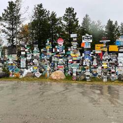 Um auch noch mit ein bisschen Wissen um mich zu werfen. Ich glaube, Watson Lake ist, mal abgesehen seines Daseins als Wegpunkt in Richtung südlicheres Kanada, wohl dafür bekannt für irgendeinen Schilderwald. Keine Ahnung, was das genau soll, aber es war vor Ort und es stand etwas im Sinne von „World famous Bliblablu…“ und dann kam dieser Schilderwald.. Es hatte uns etwas ZU viele Deutsche Schilder.. Nummernschilder, Ortsschilder.. alles mögliche.