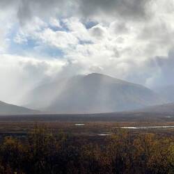 Nach dem Mittagessen fuhren wir weiter und die Wolken lichteten sich ein bisschen, sodass wir wenigstens halbwegs was sahen. Plötzlich kam sogar die Sonne zum Vorschein und bei einem See sah ich einen Elch stehen. Leider hielten wir wohl etwas zu rasant an und ich knallte die Türe zu laut, sodass er sich verzog, bevor ich ein Foto schiessen konnte.