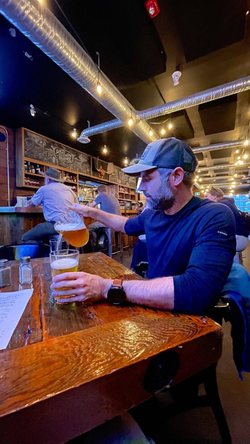 Im Hotel gab es eigentlich ein Restaurant, aber wir dachten, es wäre für die Bekämpfung des Jetlags nicht sehr schlau, zum früh im Bett zu sein. Also marschierten wir los und gingen Downtown irgendwo essen. Das Bier war gut, die Chicken Wings ebenso, die Burger hätten besser sein können.