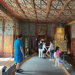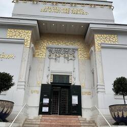 Our final port of call was to the Secession building. The Secession movement was founded by Gustav Klimt and a group of artists in 1897. It was a breakaway from the traditional artistic views of the Viennese elite. This incredible building was designed as an exhibition venue in 1898, conceived as an ‘art temple’ of early modernism and a key work of Viennese art nouveau. It must have startling when it was first opened and is no less so now, having stood the test of time. In 1902 its first major exhibition featured a major show dedicated to Ludwig van Beethoven, for which Gustav Klimt created his famous Beethoven Frieze. The fresco paid homage to Beethoven’s 9th symphony and the Ode to Joy. It was originally displayed in the large white exhibition hall with a window in the wall showing a famous sculpture of Beethoven outside. The frieze was later moved to its permanent position in the basement space. The room is a rectangular white box apart from the fabulous art work that circumnavigates the top of three of the walls. I accept it is possibly an acquired taste. We walked in and Peter looked around looking somewhat puzzled. “Is this it then?!”; perhaps I had overdone the majesty of the work!! It’s all in the eye of the beholder and whilst to me it is a masterpiece to others maybe less so! We sat down and talked it through - I don’t think he was convinced. Art lesson completed, but a failure!