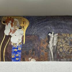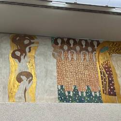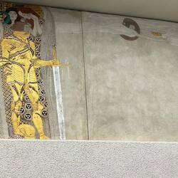The fresco paid homage to Beethoven’s 9th symphony and in particular the Ode to Joy anthem. It was originally displayed in the large white exhibition hall, with a window in the wall showing a famous sculpture of Beethoven outside as part of the installation. The frieze was later moved to its permanent position in a basement space. The room is a rectangular white box, empty apart from the fabulous art work that circumnavigates the top of three of the walls. I accept it is possibly an acquired taste. We walked in and Peter gazed around looking somewhat puzzled: “is this it then?” was the comment. Perhaps I had overdone the majesty of the work! It is of course all in the eye of the beholder and whilst to me it is a masterpiece, to others maybe less so. We sat down and talked it through - I don’t think he is convinced. Art lesson completed, but a failure!