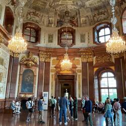 The famous Marble Hall is spectacular and was the setting for the signing of the state treaty to guarantee the re-establishment of a free and democratic Austria in 1955, some ten years after the end of the 2nd World War. It was signed by the four allied and associated powers,