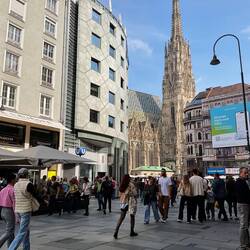We spent the rest of the day exploring the old part of Vienna in all its glory. The Cathedral is at its heart and known as Stephansdom or ‘Steffl’ to the locals. It is pure Gothic, although parts of it date back to the 11th century. The Cathedral was badly damaged by bombing during World War 11 and was lovingly rebuilt from the ashes as a symbol of hope for the future. We were lucky enough to listen to the choir and accompanying orchestra rehearsing for a performance this evening.