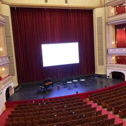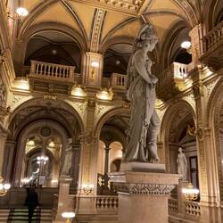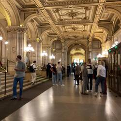 The Staatsoper or Viennese Opera House was on our hit list from the word go, but it is not easy to get into. I checked the performances over the period we were there and we had the choice of one of Wagner’s ring cycle (all 5 hours worth?!) or ‘Einfuhrungsmatinee zur Premier von DIE VERKAUFTE BRAUT’, on the Sunday Morning between 11&1pm. After a bit of research, I gathered that this was a pre performance of The Bartered Bride by Smetana, so no contest then. We booked a couple of tickets and headed off with no real idea what we were letting ourselves in for, apart from the fact we knew whatever it was would be in German. Well, no surprise there, and we knew we would enjoy the music whatever the language. It was going to be a great experience to attend this world famous Opera House. The building on the outside is partly covered as it is undergoing renovations and gives one no real idea of the incredible interior. It is quite breathtaking, which shouldn’t be a surprise bearing in mind the rest of Vienna. The photos will give you an idea. Interestingly, the auditorium itself was not quite as grand as I had expected, but still pretty special and to our surprise I had booked seats in a box! This was not apparent from the seating plan. The box was clothed in red velvet, had 7 seats and its own anteroom, for hanging coats etc. There were three very charming Austrian ladies on the front row, two empty chairs on the second row and then us on the 3rd, raised on a ledge. Early on it became apparent that this was an introduction to the coming Opera mainly in word, with not that much in the way of music - uh oh! The compère spoke very well with no notes and was clearly very amusing from the audience reaction, although of course the jokes were lost on us. We hope we smiled in all the right places and were introduced to the conductor, director, who told us all about their role in the production and finally, the producer, who once wound up, went on at length with great enthusiasm! The highlight for us was when Peter dropped his water bottle with a great clatter and had to grovel about on the floor to retrieve it. The ladies were very understanding. Music finally arrived in the shape of some of the artists involved in the production. They were excellent as you might expect, accompanied by a maestro on the piano. They sang a little from The Bartered Bride, but then to our confusion gave us a touch of Wagner, Dvorak and Donizetti. All lovely and I’m sure the reasoning was perfectly explained if you understood German. As we said earlier, an experience, and we were glad to have make it inside the Opera House.