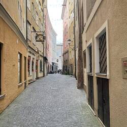 This is the second instalment of our Golden Anniversary travels. We touched down in Salzburg last night, as the sun was setting behind the surrounding mountains in shades of pink and gold and made our way to the appropriately named Goldgasse Hotel situated in the old part of the city. Our hostess was on the door to meet us and plied us with a welcome glass of something sparkling whilst the formalities were dealt with. Something tells me all will be well, as the supper that followed was of a similar ilk!