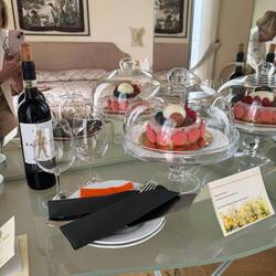We sat and enjoyed the celebratory cake provided together with a glass of wine and life was good!