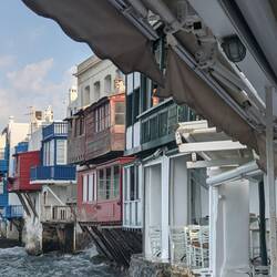 After touring Delos, we headed back to the sea taxi and returned to Mykonos. We searched for a place to eat. We finally found a Souvlaki/gyro fast food shop and got lunch there. Then we had to find our way back to the tender landing. We made sure we continued to go down and followed the streets where the wind was blowing the strongest. We only had to wait about 15 minutes for our tender.