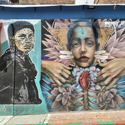 Um Bogotá von einer anderen Seite kennen zu lernen, machen wir heute eine kleine Graffiti Tour in der Umgebung. Da sind wirklich einige spannende Kunstwerke dabei.
