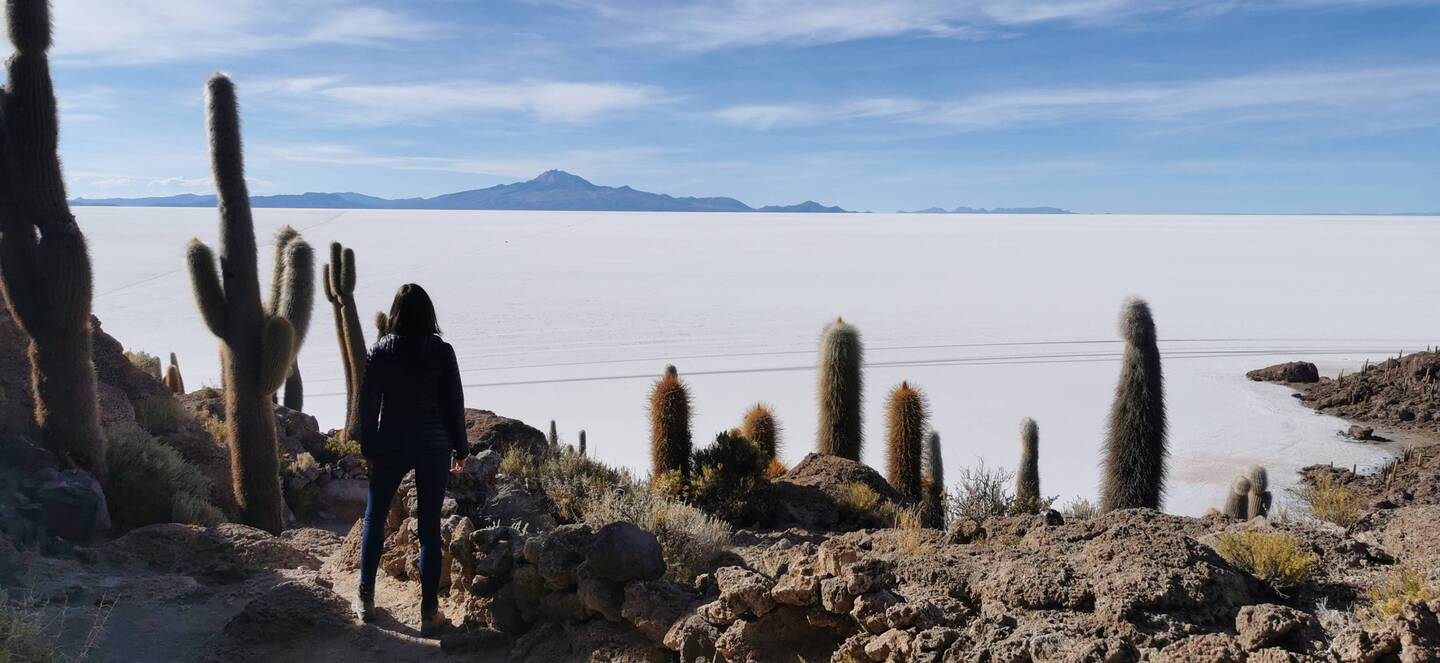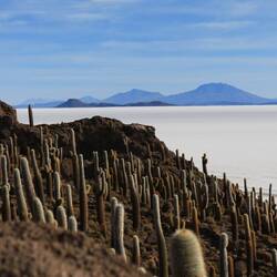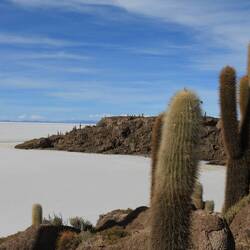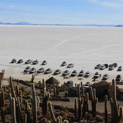 Inmitten des Salar de Uyuni liegt die Isla Incahuasi (Quechua für Haus der Inka), die für ihre vielen meterhohen und teilweise mehr als 1200 Jahre alten Säulenkakteen bekannt ist. Hier legen wirEn savoir plus