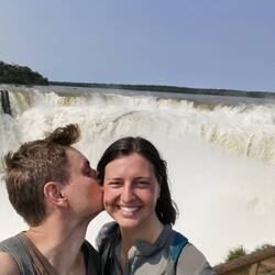 Heute besuchen wir die argentinische Seite der Iguazú-Wasserfälle. Schon früh am Morgen fahren wir mit dem Bus zum Parkeingang und starten kurz darauf unsere Wanderung im Nationalpark. Wir haben uns entschieden, mit der Besichtigung der kleineren Wasserfälle anzufangen und das große Highlight bis zum Schluss aufzusparen. So laufen wir erst entlang eines etwas abgelegeneren Weges hinein in den Regenwald und haben aufgrund der wenigen Besucher sogar nicht das große Glück einige Regenbogentukane zu sehen. Schon dieser erste Wanderweg bietet spektakuläre Aussichten auf die unteren, etwas kleineren Wasserfälle. Danach geht's weiter zu den mittleren Wasserfällen. Dieser Weg führt uns spektakulär entlang des Abgrundes, wodurch wir dem tosenden Wasser ganz nah sein können. Wie schon in Brasilien sind wir auch hier wieder stundenlang unterwegs und genießen das Naturwunder ausgiebig.