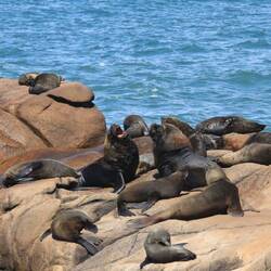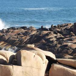 Angekomnen im Nichts, umgeben von Sand und noch mehr Sand, beziehen wir unsere Betten im Hostel und drehen eine erste kleine Runde. Schon bald sehen wir die ersten Robben und erfreuen uns am Treiben auf den Felsen.
