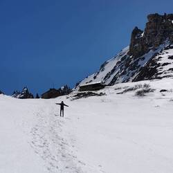 Nach einer ausgiebigen Pause treten wir den Rückweg an. Die Rutschpartie wird immer mal wieder zur Herausforderung, wodurch sich die eigentlich harmlose Wanderung für uns heute doch schwieriger gestaltet, als geplant.
