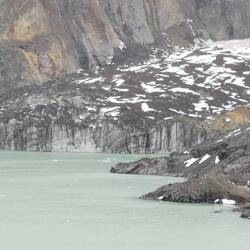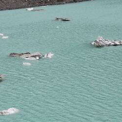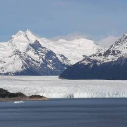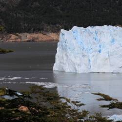 Kurze Zeit später stellen wir das Auto auf dem Parkplatz ab und laufen zu den ersten Aussichtspunkten. Die Sicht ist spektakulär! Auf Tafeln erhalten wir interessante Informationen, unter anderem die Ausmaße des Gletscher: die Front 40 bis 70m hoch, Durchmesser in der Ferne 8km breit, Länge über 20km und die Dicke in der Mitte 700m. Zahlen, die aus unserer Perspektive total verzerrt sind und nur teilweise durch Tourboote in der Nähe des Gletschers greifbar werden. Etwa 5 Stunden laufen wir entlang der Wege und genießen alle paar Meter die tolle Aussicht. Immer wieder brechen kleinere und größere Stücke vom Gletscher ab, was das erste Mal nicht schlimm ist, da der Gletscher nicht schrumpft. Einmal bricht ein etwa 40m hohes Stück an der Seite des Gletschers ab und verursacht Wellen so groß wie ein Schiff - gewaltig!