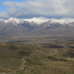 Der zweite Tag wird landschaftlich interessanter. Wieder begleiten uns unzählige Guanacos. Zudem rennt uns auf einem etwa 70km langen, unbefestigten Straßenabschnitt ein Gürteltier vors Auto. Danach dauert es nicht lange, bis wir in der Ferne das südliche patagonische Eisfeld ausmachen. Der Blick in die Berge wird schnell spektakulärer. Am späten Nachmittag erreichen wir El Calafate, unseren Zielort. Seit wir Bariloche vor vier Tagen verlassen haben, sind wir knapp 1.700km gefahren - das Meiste davon in südliche Richtung, was sich auch auf der Weltkarte bemerkbar macht.