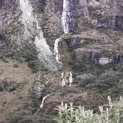 Stattdessen machen wir heute eine größere Wanderung zu einem der höchsten Wasserfälle der Erde. Der Wasserfall ist insgesamt 771m hoch, aber unterteilt in eine 220m hoheLeggi altro