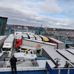 Wir sind heute so gefahren, dass wir es genau pünktlich zur Fähre geschafft haben. Check in ging flott, die Wartezeit, bis wir auf die Fähre durften, war sehr kurz.