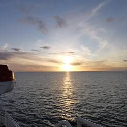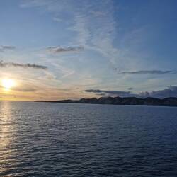 Auf den Weg von Trelleborg nach Rostock kamen wir auch an Dänemark vorbei. Die See ist total ruhig. Gut für meinen Magen. Und wir haben einen schönen Sonnenuntergang.
