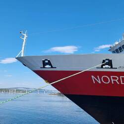 Frisch gestärkt vom Frühstücksbuffet sind wir in Finnsnes kurz von Bord gegangen. Kurzer Fotostop bevor es weiterging.