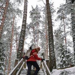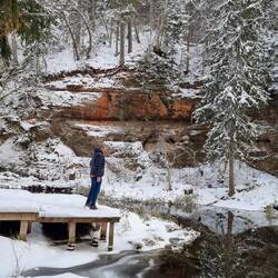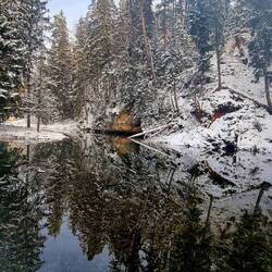 Unsere Wanderung heute - Am Gauja entlang, durch den herrlich frisch verschneiten Wald zur Dzirdavots (Quelle) die vor ca. 8.000 bis 5.000 Jahren entstand. Diese hier ist ziemlich groß und produziertEn savoir plus