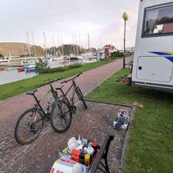 Hier in Leba haben wir uns vorher schon den Stellplatz an der Marina rausgesucht. So langsam müssen wir uns daran gewöhnen, wieder Nachbarn zu gaben. Diesmal waren es 2 Schweizer.