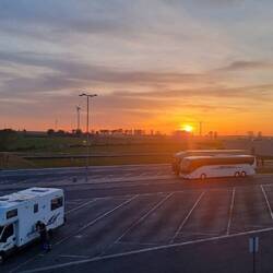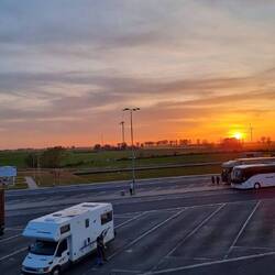 Unser Tagesziel gestern haben wir noch vor Einbruch der Dunkelheit erreicht. Mit uns stand noch ein polnisches Paar im LKW auf dem Platz und ein deutscher SUV mit Wohnanhänger.