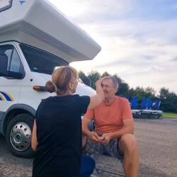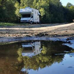 Wie schön, dass hier ein Wasserhahn ist. So konnten wir unsren Frischwasserrank voll machen. Das Grauwasser haben wir in der Toilette "eimerweise" 🪣🪣🪣weggeschüttet. Mühsam ernährt sichRead more