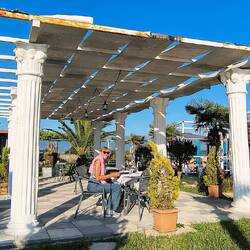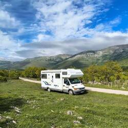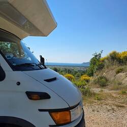 Schöner kleiner Platz am Straßenrand mit Blick auf die Adria. Leider total zugemüllt. Haben etwas Müll zusammengesammelt, damit wir uns wohlfühlen.