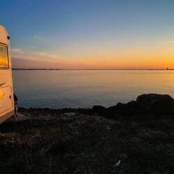 Wir haben im Restaurant sehr lecker gegessen und von hier aus wieder einen tollen Sonnenuntergang erlebt. Die letzten Sonnenstrahlen haben wir dann auf dem Stellplatz eingefangen.