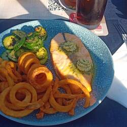 Zum Abend gönnen wir uns noch einen Restaurantbesuch auf dem Campingplatz. Eine gute Entscheidung: leckeres Essen mit tiefstehender Sonne, wir sind zufrieden 👍.