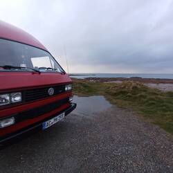 Ich bin nach dem Frühstück mal zum Meer, dem war es egal, ob Ebbe oder Flut, Regen oder Sonne, es tobte weiter. Zurück am Bus entschied ich mich, mal den fälligen Check am Bus durchzuführen. Der Motor ist im Heck, die Klappe schützt vor Regen. Gesagt, getan. Keine besonderen Vorkommnisse, alles i.O. 👍. So kann es bleiben. Der Regen wird weniger, yeah.
