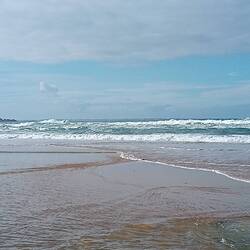 Nach dem Frühstück ging's an die Westseite nach Barneville - Carteret und von da die ganze Küste runter bis Granville entlang der "Route de la baie" bis in die Nähe vom Mt. St. Michel. Wunderschöne einsame Sandstrände gibt es da, aber der Tourismus liegt noch komplett darnieder. Lediglich Baguette Automaten sind dort in Betrieb und vielleicht ab und an eine Bar geöffnet. Der Tag war vom heftigen Sturm geprägt, aber nur mit einzelnen Schauern gespickt. Am Strand konnte man sich Sandstrahlen lassen aber die riesigen Strände waren fast alle leer. Genau wie die Parkplätze und Stellplätze ringsherum. Trotzdem habe ich den ein oder anderen Spaziergang gemacht und mir den Wind um die eingepackten Ohren wehen lassen.