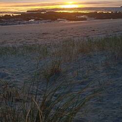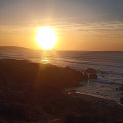 Wieder zurück am Bus stelle ich selbigen an den Rand hinter eine kleine Anhöhe, da stehen schon 2 Kastenwagen und beschließe, hier zu bleiben. Ich setze mich noch auf die Düne und schaue den Wellen zu bis irgendwann die Sonne untergeht.