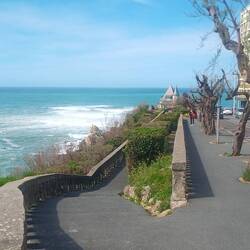 Anschließend weiter nach Biarritz, sehr beeindruckende und vornehme Stadt. Ich kämpfe mich bis zur Küstenstraße vor und schlängel mich an der Promenade entlang. Toller Blick, aber keine Chance auch nur kurz für ein Foto anzuhalten. Erst als ich aus dem Ort rausfahren, kann ich kurz anhalten und zwei Bilder machen. Das hatte ich mir anders vorgestellt, aber von außerhalb nochmal rein laufen, dafür ist mir der Weg zu weit.