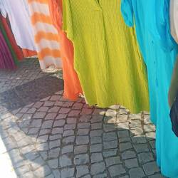 Heute nach dem Frühstück bin ich dann kurz nach Vila Real de Santo Antõnio einkaufen gefahren (3km)und habe den Bus so geparkt, dass das Solarpanel mal wieder arbeiten kann. Bei der Wärme versuchte man eher im Schatten zu parken, aber für Solarstrom reicht keine Wärme, da muss Sonne her. Und bei dem Wetter muss der Kompressorkühlschrank auch arbeiten, also wenn ich heute nicht fahre, sollte ich ein wenig laden. Ich nutze die Zeit anders und schaue mir zu Fuß Vila Real de Santo Antõnio an. Auch ein schöner Ort mit netter Fußgängerzone bis zum Hafen, nette Geschäfte und heute mit Schulausflug, zumindest haben diverse Klassen Darbietungen am Marktplatz präsentiert und danach die Fußgängerzone unsicher gemacht. Wie gesagt, netter Ort an der Flussmündung.