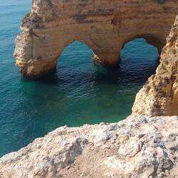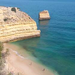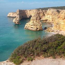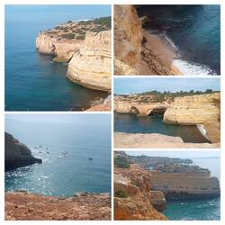 Heute morgen bin ich dann nach dem Frühstück, bevor es zu heiß wurde zu den Benagil Caves und von da die Küste entlang bis zum Praia da Marinha gelaufen. Insgesamt 6 km war die Runde lang und das ist definitiv einer der schönsten Küstenabschnitte auf meiner Reise. Jeder Fels ist toll, anders, überall Aussichtspunkte, tolle Farben, tolles Licht, türkisfarbenes Meer... Einfach nur schön...