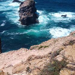 Eine unspektakuläre Nacht auf dem Campingplatz, lauter als sonst aber auch praktisch, Toilette, Dusche, Spülbecken, Wasser ohne Ende ist auch mal wieder ganz schön. Im Laufe des Vormittags dann aufgebrochen und zunächst Porto Covo angesteuert. Dort angekommen bin ich direkt ins Wohngebiet gefahren. Ich war ja auf dem Hinweg kurz hier, hier ist ja alles Verbotszone, aber meistens stehen im Wohngebiet noch keine Schilder, also versucht und siehe da, kein Schild 👍 und da geparkt. Trotzdem kommt es mir vor, als wäre Markt, es ist viel los. Es ist aber kein Markt und dann schaue ich im Internet nach. Der 1. Mai ist auch in Portugal Feiertag. Jetzt verstehe ich, warum gestern Abend alle Restaurants besetzt waren, so viele Leute beim Sonnenuntergang waren und es jetzt hier so voll ist. Langes Wochenende mit Feiertag, da sind alle unterwegs. Zumal es heute wieder deutlich wärmer ist, der kühle Wind ist wieder warm, es geht wieder auf 30° zu. Damit ist klar, viel Neues kann ich heute kaum entdecken. Ich nehme mit also etwas mehr Zeit in Porto Covo und beobachte dabei am Strand, wie die Polizei von Wohnmobil zu Wohnmobil geht, Kennzeichen fotografiert und Infozettel unter den Wischer klemmt. Parken nur über Tag, keine Stühle, keine Markise, kein Essen draussen, keine Haustiere draussen. Ob die das jetzt Abends nochmal kontrollieren und dann Bußgelder verhängen, keine Ahnung.